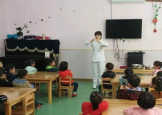 “哇,護士阿姨來啦!”剛走進課堂,教室里就響起歡迎的聲音,孩子們立馬被美麗的護士阿姨吸引住了。護士阿姨先是用親切幽默和充滿風趣的語言,介紹了自己的職業,隨后以故事情境和動畫的形式展開了課堂教學“感冒的預防”,讓幼兒了解了怎樣遠離細菌和預防感冒。同時,還教會大家正確洗手的方法。活動最后,護士還與小朋友們一起演奏并合唱了動聽的兒歌,全場畫面歡樂又溫馨!
