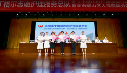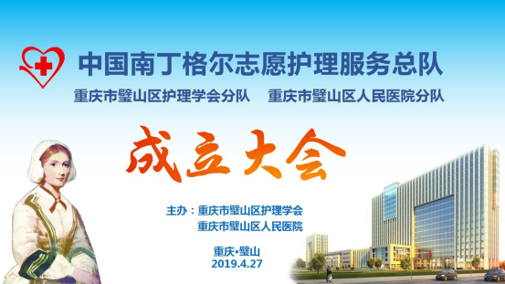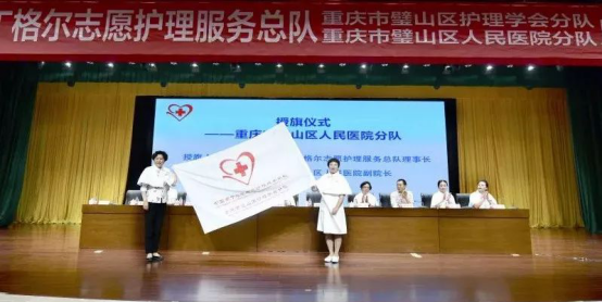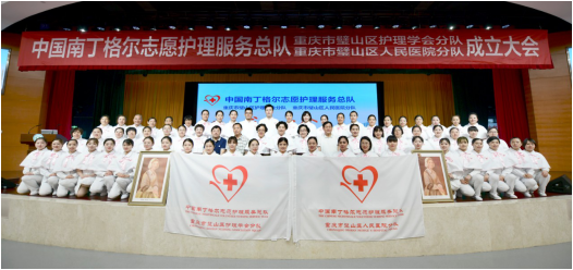 中國南丁格爾志愿護理服務總隊,是由章金媛、司堃笵二位護理前輩發起,中國紅十字會總會批準并命名,于2007年7月在北京成立。這是一支由中國南丁格爾獎章獲得者、護理專業人員、護理院校學生和社會各界愛心人士組成的志愿服務組織,也是全國第一個由護理專業人員組成的志愿者組織。在總隊的感召和引領下,全國已成立346支分隊。此次重慶市璧山區人民醫院、重慶市璧山區護理學會分別成為總隊第347支、第348支分隊。