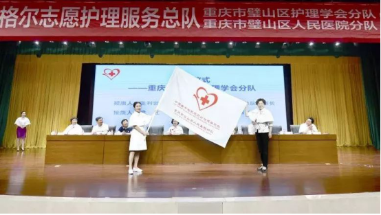 總隊張利巖理事長分別向重慶市璧山區人民醫院分隊、重慶市璧山區護理學會分隊授旗。