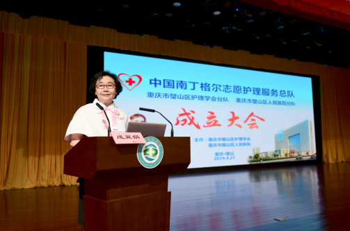 張利巖理事長宣讀了總隊同意重慶市璧山區人民醫院分隊、重慶市璧山區護理學會分隊成立的批復并發表重要講話。她高度肯定了兩支分隊前期工作成效,并期望兩支分隊今后進一步用專業為支撐、用扎實有效地服務方式、維護民眾健康、促進社會和諧進步。