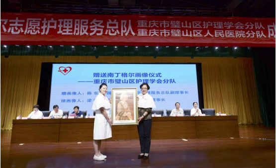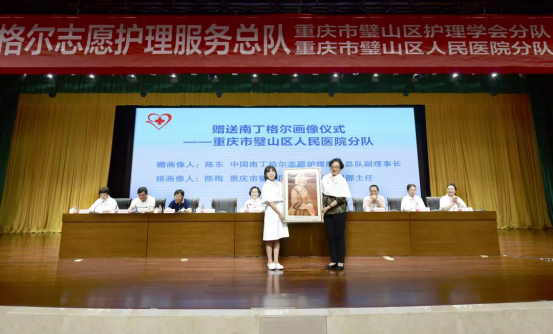 總隊陳東副理事長分別向重慶市璧山區人民醫院分隊、重慶市璧山區護理學會分隊贈送南丁格爾畫像。