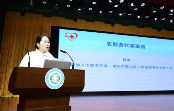 重慶市璧山區人民醫院普外科護士長楊濤作為護理志愿者代表發言。