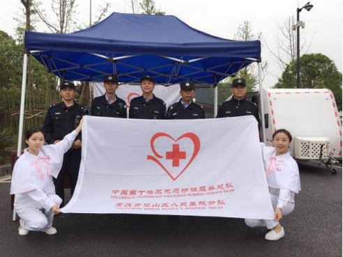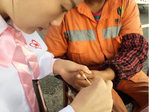 2019 年5 月 3 日,重慶市璧山區護理學會志愿者 2 人,利用休息時間自行前往城市管理局, 深入一線關心、慰問城市保潔工人,受助人數 55 人,其中為皮外傷者行消毒、止血、包扎 3人,檢測血壓 12 人,檢測血糖 5 人,健康咨詢 5 人,意外傷消毒處理流程宣講 15 人,預防破傷風知識宣講 15 人等。活動剪影如下: