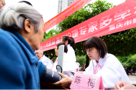 2019年5月7日,一個美好的五月天,熱熱鬧鬧的重慶市璧山區璧城大成廣場,早早就等候著很多群眾?原來是大家看到廣場標語“中國南丁格爾志愿護理總隊,重慶市璧山區護理學會分隊、重慶市璧山區人民醫院分隊聯合義診”!南丁格爾志愿服務分隊長、重慶市璧山區人民醫院副院長劉光碧帶領18位醫療護理專家,于清晨8點準時到達廣場展開義診活動,廣大群眾自覺列隊有序候診,活動長達4小時于12點結束,受助群眾達500余人,其中發放健康手冊1300人份、內科診治50人、健康體檢120人、疾病咨詢75人、血壓監測224人、血糖監測37人、母乳喂養指導41人、孕期保健指導23人、康復護理指導21人、PICC管道護理7人、腸道造口護理4人。現場群眾夸贊南丁格爾志愿者是“美麗天使”!是真正對老百姓好的人!希望美麗天使多多開展這樣的義診活動,希望在廣場建一個“便民健康服務站”。活動剪影如下: