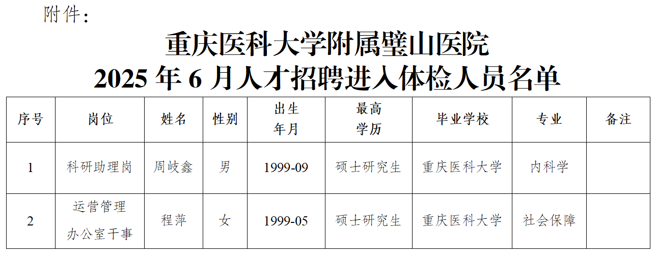重慶醫科大學附屬璧山醫院招聘編外人員