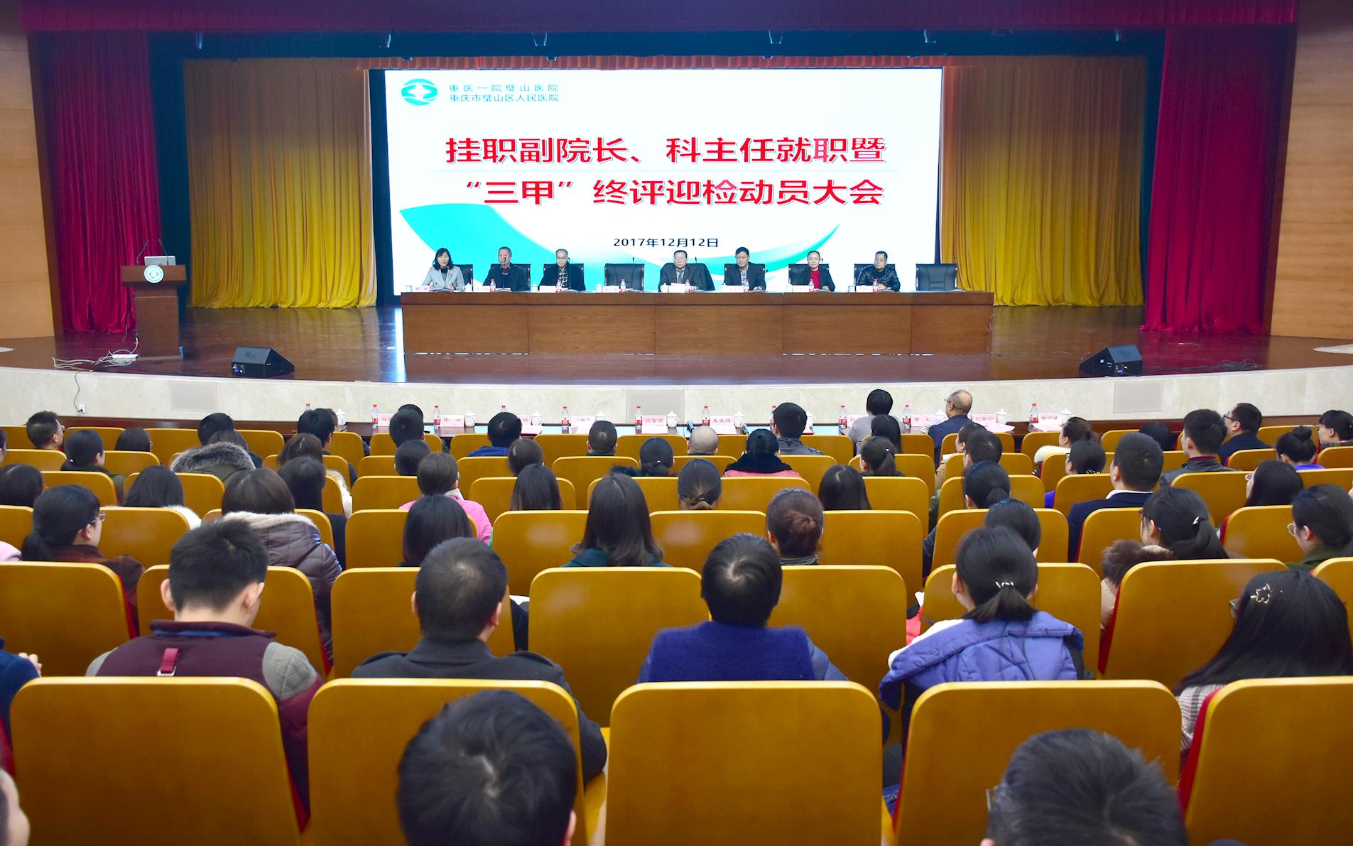 我院“三甲”創(chuàng)建工作進(jìn)入決勝關(guān)鍵時(shí)期,為統(tǒng)一思想,凝心聚力,12月12日,醫(yī)院召開(kāi)“掛職副院長(zhǎng)、科主任就職暨 ‘三甲’終評(píng)迎檢動(dòng)員大會(huì)”。重醫(yī)一院副院長(zhǎng)呂富榮、區(qū)衛(wèi)生計(jì)生委主任柯真碧以及重醫(yī)一院4位掛職專(zhuān)家出席會(huì)議。會(huì)議由院黨委書(shū)記劉鴻主持。我院班子全體成員、中層干部、創(chuàng)建骨干、質(zhì)控骨干等近500人參會(huì)。