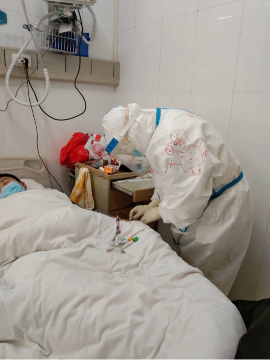 我們醫(yī)療隊接管的是孝感中心醫(yī)院的EICU——工作量最大、風險最高、患者病情最嚴重的地方。和我一起出征的還有重癥醫(yī)學(xué)科的另外三位姐姐——王玲、王春蘭、謝膠,我們四姐妹組成了“璧醫(yī)重癥小分隊”。進入EICU,很多非重癥專業(yè)的同事對工作都比較陌生,而我們“重癥小分隊”憑借專業(yè)能力,在迅速適應(yīng)環(huán)境、做好工作的同時,還當起現(xiàn)場“老師”,指導(dǎo)其他同事呼吸機、CRRT、抽血氣等操作方法。我們最常說的一句打氣話就是:“ICU的妹兒,走到哪里都不怕!”