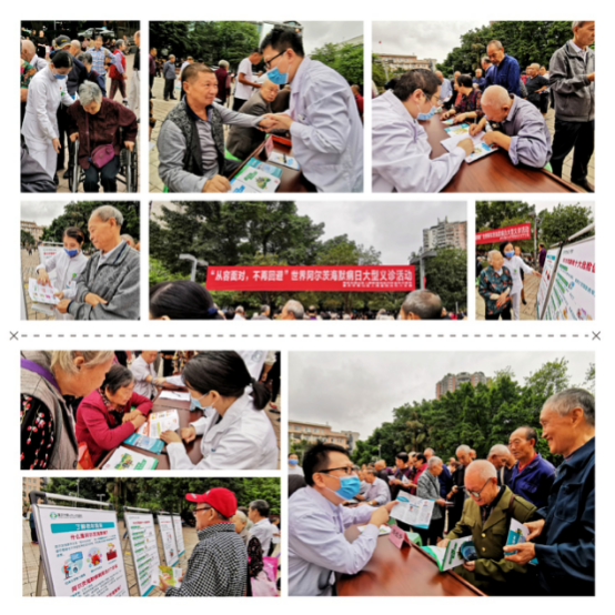 9月21日是世界阿爾茨海默病(老年癡呆癥)日,為了讓群眾正確認知老年癡呆癥,改變消極、悲觀的觀念和偏見,當天上午,我院神經內科在大成廣場開展“從容面對 不再回避”義診活動,呼吁人們將關愛癡呆老人化為行動,位老人構建和諧的生活環境。