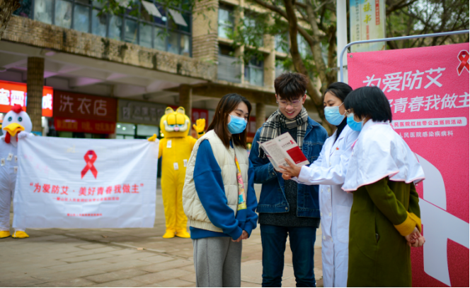 連日來,我院感染性疾病科醫(yī)護人員走進璧山區(qū)機電職業(yè)技術(shù)大學,開展了愛心簽名、貼“紅綢帶”、健康體檢等公益活動,為年輕師生進行艾滋病防控科普宣傳。
