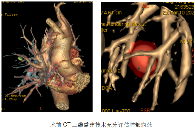 隨著我國社會福利、醫療保障以及人們健康意識的提高,CT篩查已逐漸普及,越來越多的早期肺癌以磨玻璃影和小結節形式被檢出。患者姚X,楊XX均是在體檢時行胸部CT發現肺部結節病變,病灶大小1cm左右。對于此類病灶,過去傳統的手術方式常常是肺葉切除,但人體只有5個肺葉,行肺葉切除雖然可以達到腫瘤切除的目的,但“殺敵一千自損八百”,手術將不可避免的造成肺組織損失,有效呼吸面積的減少。尤其對于高齡、體質虛弱、既往慢性呼吸系統疾病、心肺功能差的患者,過多地切除肺組織可能會進一步影響心、肺功能,造成難以耐受手術以及術后生活質量明顯下降。