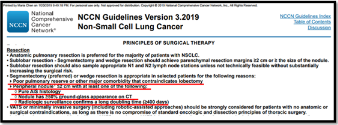 早期肺癌患者如何在保證手術效果與遠期療效的同時,盡可能的保留肺功能?針對這一矛盾,美國《NCCN指南》給出了這樣的答案:對于心、肺功能差,肺部結節直徑≤2cm,尤其是結節內磨玻璃樣成分大于50%的患者,進行亞肺葉切除可能是更好的選擇,這也為早期肺癌的治療提供了新的模式。