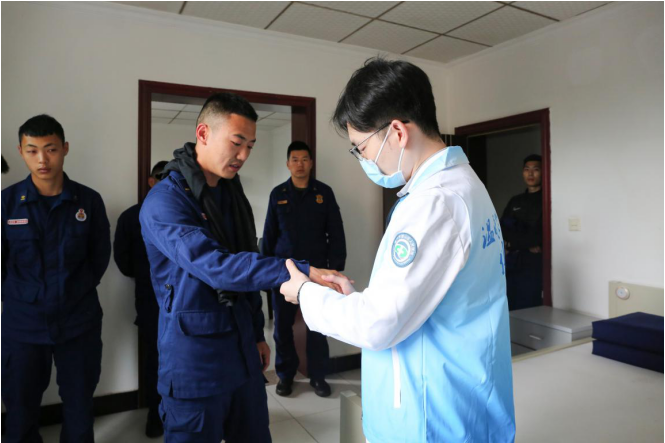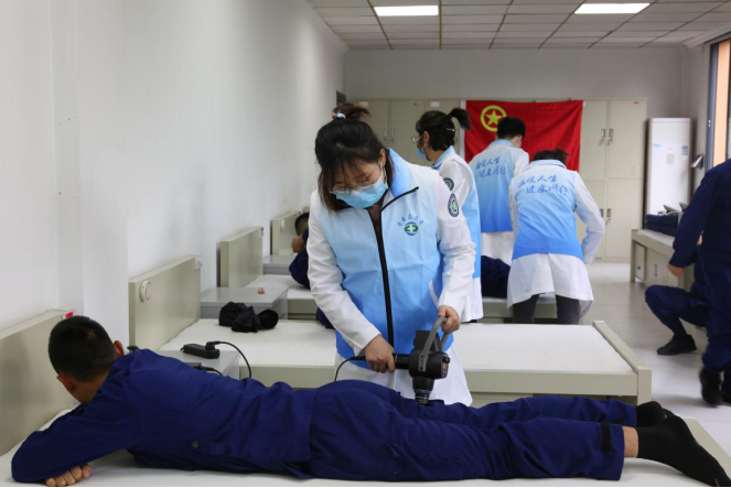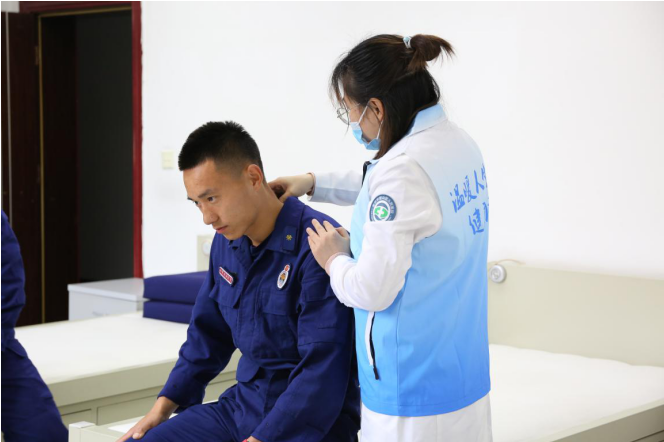 活動中,青年志愿者們首先對指戰(zhàn)員進行了健康普查與康復理療宣教,并逐一開展了詢問診斷,就個別指戰(zhàn)員生活中不良的習慣和常見病癥,提出了針對性預(yù)防措施與恢復訓練計劃。隨后結(jié)合指戰(zhàn)員身體癥狀,利用攜帶的醫(yī)療器械,采取經(jīng)絡(luò)疏通、穴位推拿理療等方式,對其進行了“一對一”治療。