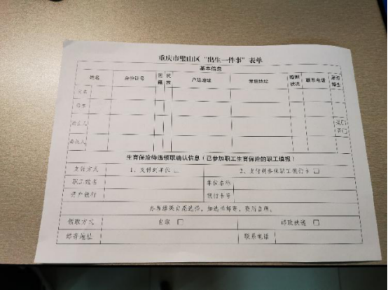 ▲新生兒父母現(xiàn)在只需填寫一張表格,即可辦理所有事項 重慶日報記者龍丹梅攝