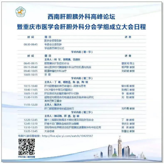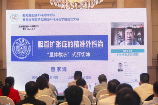 西南肝膽胰外科高峰論壇暨重慶市醫學會肝膽胰外科分會學組成立大會于5月8-9日在重慶市澳維酒店成功召開。該會議由重慶市醫學會、重慶市醫學會肝膽胰外科分會主辦,陸軍軍醫大學第一附屬醫院全軍肝膽外科研究所、重慶市璧山區人民醫院承辦,《中華消化外科雜志》學術支持。中國工程院院士、中國醫師協會常務副會長、清華大學附屬北京清華長庚醫院院長、《中華消化外科雜志》總編輯董家鴻教授,重慶市醫學會肝膽胰外科分會主任委員、陸軍軍醫大學第一附屬醫院張雷達教授擔任大會主席。采用線下與線上會議結合模式,邀請來自全國肝膽胰外科領域的多位著名專家,不僅是肝膽胰外科分會學組成立大會、也針對肝膽胰外科領域的系列熱點、難點問題進行學術爭鳴。會議特設線上直播平臺,在線觀看2000余人次。