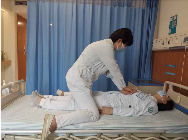 在聽到呼救聲后,護(hù)士陳萬莉、羅洪艷等人立刻沖到病房查看患者,同時通知值班醫(yī)生、楊濤護(hù)士長參與搶救。家屬因為緊張,有些“語無倫次”,但醫(yī)護(hù)人員仍舊從其描述中快速判斷患者為氣管異物堵塞造成窒息,在場護(hù)士立刻利用海姆立克急救法對患者施救,同時協(xié)助吸痰,吸氧,通知麻醉科插管。