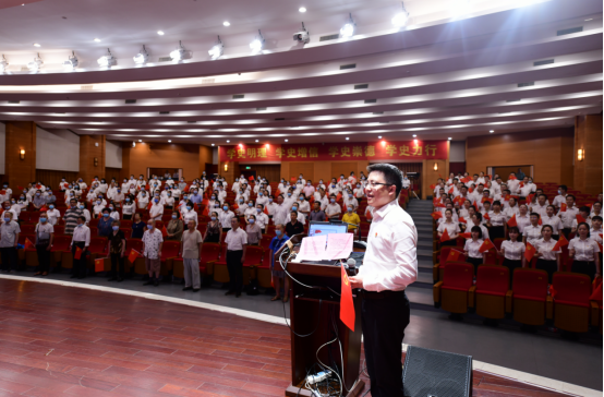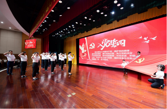 最后,全體起立,院黨委書記劉鴻帶領新黨員宣誓,全體黨員重溫入黨誓詞。激昂的宣誓聲中,與會人員重溫入黨初心,見證美好祝福,唱響璧醫高質量發展旋律,為黨的百歲誕辰獻禮。