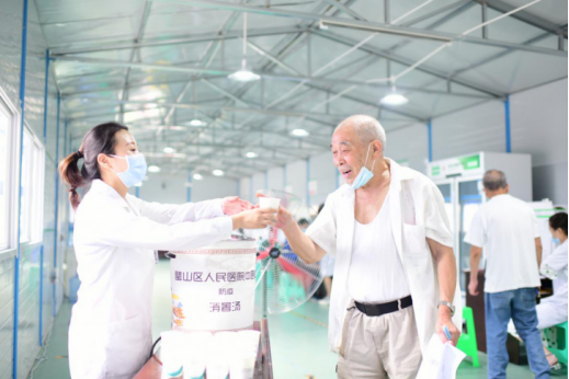 在活動現(xiàn)場,醫(yī)護人員為群眾送上一杯杯解暑的“中藥消暑湯”,并協(xié)助開展秩序維護、答疑釋惑、接種引導、科普宣教等工作。醫(yī)護人員以熱情、耐心的服務得到了廣大居民好評的同時,也用實際行動為全國文明城區(qū)的創(chuàng)建做出了積極貢獻。