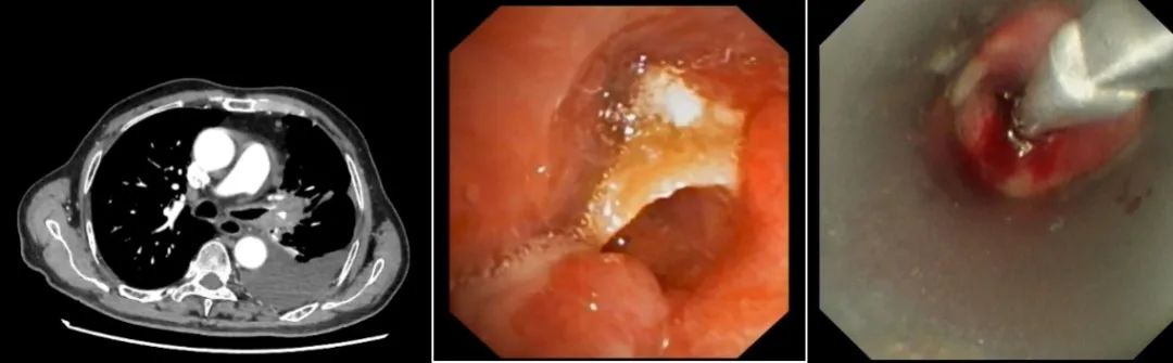 主管醫(yī)生冉雪梅為患者完善了胸部CT檢查,考慮“支氣管異物”可能性大,且病變已經(jīng)嵌入支氣管壁內(nèi),極其危險(xiǎn),且患者病史較長(zhǎng),周圍肉芽組織增生明顯,引起阻塞性肺炎,反復(fù)咳嗽、咳膿痰,院外多次行支氣管鏡檢查,但未能成功取出該異物。