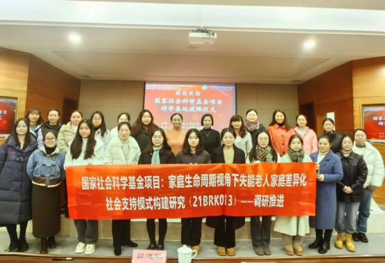 為積極響應(yīng)國家《“十四五”規(guī)劃建議》支持家庭承擔(dān)養(yǎng)老功能的政策要求,深入研究失能老人及其家庭在不同生命周期階段所需的社會支持,進(jìn)一步促進(jìn)研究成果轉(zhuǎn)化與推廣,2024年1月上旬,重慶醫(yī)科大學(xué)附屬第一醫(yī)院趙慶華教授團(tuán)隊(duì)依托國家社會科學(xué)基金項(xiàng)目《家庭生命周期視角下失能老人家庭差異化社會支持模式構(gòu)建研究》(項(xiàng)目編號21BRK013),在重慶醫(yī)科大學(xué)附屬璧山醫(yī)院(重慶市璧山區(qū)人民醫(yī)院)舉行了國家社會科學(xué)基金項(xiàng)目研學(xué)基地授牌儀式。