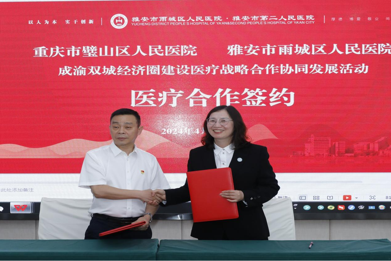 4月30日,重慶醫科大學附屬璧山醫院(重慶市璧山區人民醫院)與四川省雅安市第二人民醫院(四川省雅安市雨城區人民醫院)在雅安市雨城區舉行成渝雙城經濟圈建設醫療戰略合作協同發展活動。
