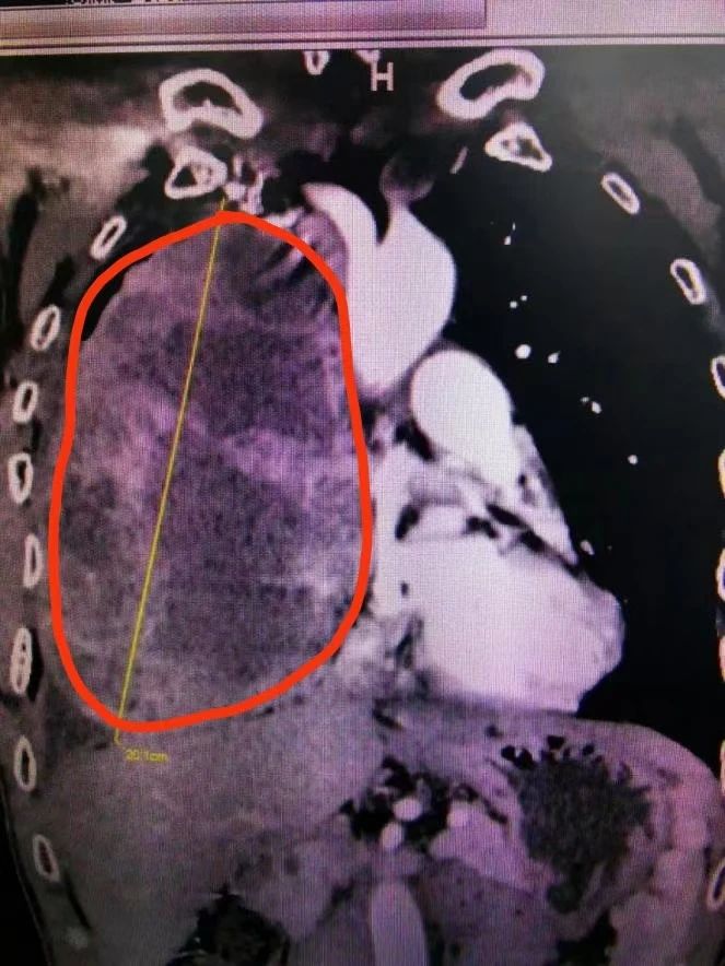 鄧意平主治醫(yī)師介紹,縱隔是一個解剖區(qū)域,位于兩肺之間,胸骨和胸椎為前后界。縱隔內原發(fā)腫瘤以良性多見,也有部分惡性。因其內有重要器官,原則上縱隔腫瘤一經發(fā)現,建議手術治療,對于直徑大于10厘米的腫瘤被稱之為巨大縱隔腫瘤,該患者的腫瘤達20多厘米的情況實屬罕見。