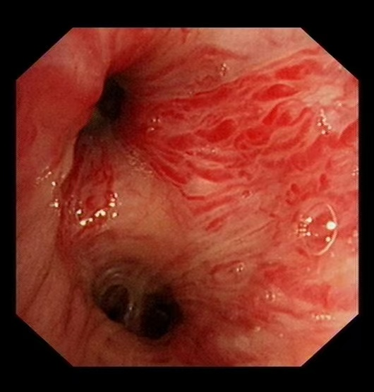 58歲的汪先生(化名)因大咯血入院,雖生命體征平穩,但出血癥狀持續未緩解。經支氣管鏡檢查發現,其左側支氣管內存在浸潤性新生物,表面血管扭曲、血供豐富,隨時可能再次出現大咯血,病情十分兇險。