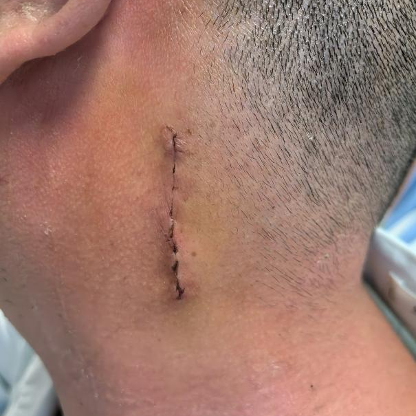 徐忠燁主任醫師與神經脊柱脊髓組組長鄧雷副主任醫師與團隊討論后,一致認為:頸 1 - 2 作為人體脊柱的最高位區域,緊鄰腦干、脊髓、椎動脈等重要生命中樞,其內部解剖結構極其復雜,密布著眾多關鍵的神經、血管,手術操作空間極為狹小,堪稱“生命禁區”。為保證患者手術安全,最大程度保護患者神經功能的同時并完整切除腫瘤,決定采用側方入路這一極為巧妙的手術方式,這種手術方式的切口更小,極大降低了腫瘤周圍神經、血管損傷的風險,完整地保護了脊柱的穩定性,盡可能減少手術創傷,也為患者節約了費用。最終手術順利實施,目前患者已經康復出院。