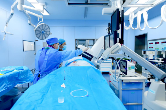 近日,我院胸心外科團隊成功實施全區首例經劍突下單孔胸腔鏡胸腔腫瘤切除手術。