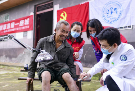 近日,重慶市璧山區人民醫院黨委開展了“健康溫暖一座城”專家博士送醫上門活動,21位資深專家、醫學博士組成扶貧志愿服務隊,亮出黨員身份,深入璧山區建龍鎮彌勒村,免費開展健康體檢、康復理療、中醫養生等方式,為脫貧家庭送去健康。通過每月深入家庭開展健康隨訪,幫助脫貧村民提高身體素質,避免因病致貧、因病返貧。 圖為:2020年10月21日,璧山區人民醫院康復醫學科專家團隊,為脫貧戶夏師傅開展康復理療。談到自己多年的腿疾逐漸恢復健康,夏師傅喜笑顏開,連連稱贊!