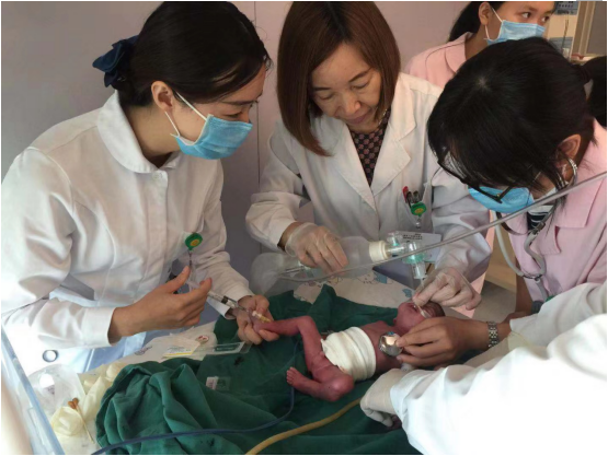 84d050a813c947c1bfeee3ed4715d708.png 在我院新生兒科監(jiān)護(hù)室,一個(gè)出生時(shí)不到3斤重的男嬰正酣然入睡。在醫(yī)護(hù)人員片刻不停的守護(hù)下,他剛剛挺過(guò)危險(xiǎn)期,規(guī)劃著未來(lái)的絢麗人生。沉浸于夢(mèng)鄉(xiāng)的他并不知道,在他順利降生的背后,凝聚著多少人的努力和祝福…… 孕期29周緊急降生 10月2日,正值國(guó)慶,準(zhǔn)媽媽郭蓉(化名)肚子突然疼痛難忍,家人呼叫120緊急送到我院急診科。經(jīng)詢問(wèn)和檢查得知,肚子里的寶寶僅有29孕周,臀位、足先露。接到急診科電話后,“孕產(chǎn)婦綠色通道”搶救小組立即行動(dòng)起來(lái),國(guó)慶值守科室的婦產(chǎn)科主任陶才莉立刻召集團(tuán)隊(duì)進(jìn)行商議和準(zhǔn)備。 然而,孕婦送到產(chǎn)科檢查室的時(shí)候,觸目驚心的一幕發(fā)生了——仿佛迫不及待要觸及這個(gè)世界,胎兒的一只腳從媽媽肚子里掉了出來(lái)。 經(jīng)驗(yàn)豐富的婦產(chǎn)科醫(yī)護(hù)人員都倒吸了一口氣,在沒(méi)做足準(zhǔn)備,甚至來(lái)不及送到分娩室的情況下,接生不到30孕周的臀位、足先露胎兒,存活幾率極不樂(lè)觀!對(duì)于我院醫(yī)療環(huán)境、醫(yī)療水平、人員素質(zhì)都是一個(gè)極大的挑戰(zhàn)。如果救治不力,這個(gè)一只腳踏進(jìn)世界的新生命將夭折! “救!必須盡全力救!就在這里救!”陶才莉主任當(dāng)機(jī)立斷,一聲令下,沖散了全場(chǎng)醫(yī)護(hù)人員的顧慮。檢查室變成了分娩室,檢查床成為搶救床,不到三分鐘,醫(yī)護(hù)人員從各樓層紛紛到位。“麻醉準(zhǔn)備就緒!”“新生兒科人員到位!”……伴隨著一聲聲有力的呼應(yīng),小小的檢查室立刻忙碌起來(lái)。 在新生命面前,來(lái)自不同科室的近10名醫(yī)護(hù)人員擰成了一股繩,在他們的聯(lián)動(dòng)下,一個(gè)體重僅1.45kg的臀位胎兒順利降生。 寶寶出生沒(méi)有心跳 “寶寶沒(méi)有心跳!”聽(tīng)到這句話,所有人的心又懸了起來(lái)。由于早產(chǎn)、極低體重,新生兒出生時(shí)就處于瀕死狀態(tài),沒(méi)有呼吸、沒(méi)有反應(yīng),甚至感受不到心跳。 “讓一讓,我們來(lái)!”以陶才莉主任帶頭的搶救人員大步向前,為新生兒開(kāi)展心肺復(fù)蘇,這個(gè)脆弱的小生命僅有1.45kg,只能小心翼翼地握在手里,用大拇指進(jìn)行按壓,力道必須精確把握,稍輕則沒(méi)有效果,稍重則損害器官。按壓的同時(shí),對(duì)孩子進(jìn)行氣管插管,開(kāi)展人工呼吸,同時(shí)建立靜脈通道。剛出生的孩子,血管細(xì)如發(fā)絲、又淺又曲折,穿刺難度極大。新生兒科護(hù)士定氣凝神,從孩子的右腳精準(zhǔn)刺入,一針見(jiàn)血,窒息復(fù)蘇搶救2分鐘,新生兒恢復(fù)了心跳,氣管插管維持呼吸。小寶寶手腳動(dòng)了起來(lái),他伸出手,緊緊握住了陶才莉主任的大拇指。復(fù)蘇只是第一步,極低體重早產(chǎn)兒并發(fā)癥的防治更重要,在產(chǎn)科醫(yī)生、麻醉醫(yī)生以及新生兒科醫(yī)師的護(hù)送下,順利將早產(chǎn)寶寶轉(zhuǎn)送入新生兒科繼續(xù)治療。 打開(kāi)生命的通道 新生兒窒息復(fù)蘇搶救成功后,寶寶被送到新生兒科進(jìn)行搶救。由于孕周不足,體重過(guò)輕,需要連續(xù)使用高營(yíng)養(yǎng)液補(bǔ)充營(yíng)養(yǎng)。如何讓營(yíng)養(yǎng)液順利進(jìn)入寶寶體內(nèi),成為又一難題。 “若采用傳統(tǒng)的外周靜脈留置針穿刺技術(shù),不僅成功率得不到百分之百的保障,而且需要反復(fù)穿刺,容易對(duì)新生兒造成靜脈炎等損傷。”兒科主任曹廷容說(shuō),要為這個(gè)29孕周的早產(chǎn)兒打開(kāi)“生命通道”,最好的方式是實(shí)施PICC置管。該項(xiàng)技術(shù)不僅能極大減少對(duì)患兒靜脈穿刺的次數(shù),降低了靜脈外滲率,減輕了靜脈內(nèi)膜的損傷,還能有效提高靜脈輸液效率。 10月8日,經(jīng)過(guò)對(duì)新生兒的臨床評(píng)估以及相關(guān)輔助檢查,在護(hù)士長(zhǎng)宋慶霞的支持和幫助下,新生兒專科護(hù)士、PICC專科護(hù)士帥宇通過(guò)詳細(xì)了解患兒病例資料,充分評(píng)估患兒病情及血管條件,選取其左側(cè)大隱靜脈,并通過(guò)拍片確定導(dǎo)管尖端位于下腔靜脈,實(shí)施PICC置管術(shù)。穿刺過(guò)程順利,置管一次成功。 這是我院第一例從大隱靜脈置入下腔靜脈,也是繼2017年我院新生兒科首例PICC置管成功以來(lái)的又一次突破。它的成功實(shí)施,不僅解決了新生兒輸液的難題,還保證了其靜脈輸液和靜脈營(yíng)養(yǎng)的通暢性,幫助患兒順利過(guò)渡到胃腸喂養(yǎng),減少住院時(shí)間,大大提高早產(chǎn)兒、低體重兒的救治成功率。 在各科醫(yī)護(hù)人員的共同努力下,如今暖箱里寶寶已經(jīng)脫下呼吸機(jī),生命體征基本平穩(wěn)。體重增長(zhǎng)至1.89kg。這個(gè)29周孕、極低體重兒的搶救成功,刷新了我院搶救早產(chǎn)兒成功的歷史記錄,這場(chǎng)愛(ài)與生命的接力,最終以勝利告終。 早產(chǎn)預(yù)防 準(zhǔn)媽媽要上心 孕婦早產(chǎn)可能導(dǎo)致新生兒死亡率增加,也會(huì)增加新生兒呼吸窘迫、顱內(nèi)出血、壞死性腸炎、感染等發(fā)生率,出生時(shí)的周數(shù)越小、體重越輕,則出生后的死亡率及并發(fā)癥發(fā)生率越高。早產(chǎn)對(duì)一個(gè)家庭來(lái)