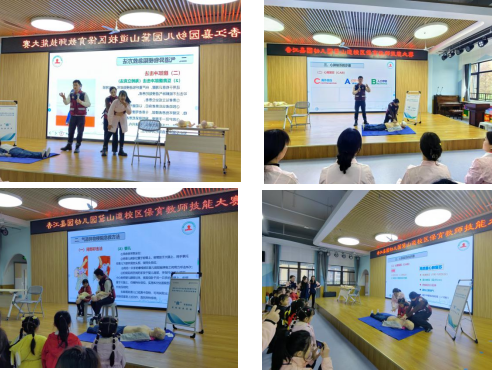 活動開始,重癥醫學科黨支部書記鄒鑫森為大家帶來了《兒童常見疾病的早期識別和意外傷害的應急處理》健康宣講,深入淺出的解說讓幼兒保健師們收獲滿滿,緊接著香江嘉園幼兒園還準備了幼兒常見疾病知識理論考核,然后由我院公眾應急培訓師王春蘭、余洋對香江嘉園幼兒園教師的急救技能進行現場考核。