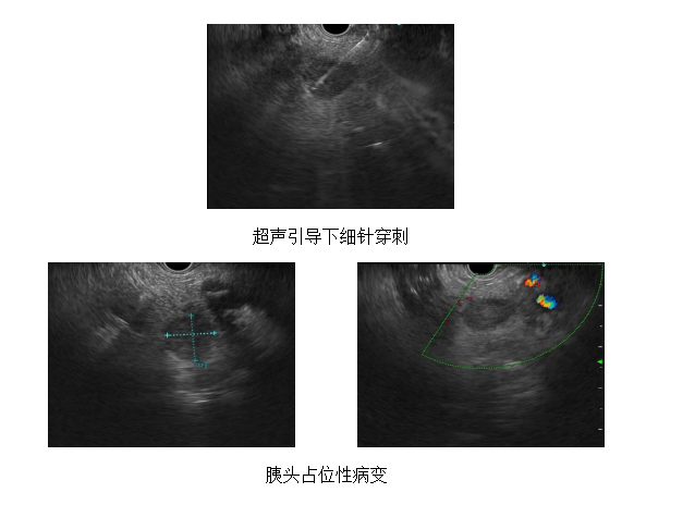 2022年9月,該患者因反復左上腹痛在我院消化內科行胃腸鏡檢查,相關檢查并未找到明確腹痛原因,在經解痙止痛等對癥治療后癥狀緩解出院,但出院后仍有反復左上腹痛,遂近期再次就診于消化內科。患者1月15日行全腹部增強CT提示胰腺多發鈣化灶,經消化內科主任馮定奇組織科室內部討論后,認為不排除胰腺病變所致腹痛可能,且有行超聲內鏡檢查的指征,遂由楊曉瓊主治醫師對該患者進行了超聲內鏡檢查(EUS),超聲提示胰頭有一個截面大小約19.4*21.5mm的低回聲灶,考慮胰頭占位性病變,同時有慢性胰腺炎改變。為進一步明確胰頭占位病變性質,在與患方充分溝通后,于1月18日行超聲內鏡引導下細針穿刺活檢術(EUS-FNA),術中穿刺過程順利。