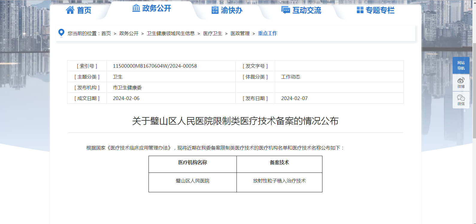 此次成功申報放射性粒子植入治療技術,是我院在腫瘤治療領域取得的又一重要成果。我院將以患者需求為核心,持續提供更多高水平的醫療服務,為璧山及周邊的患者健康保駕護航。